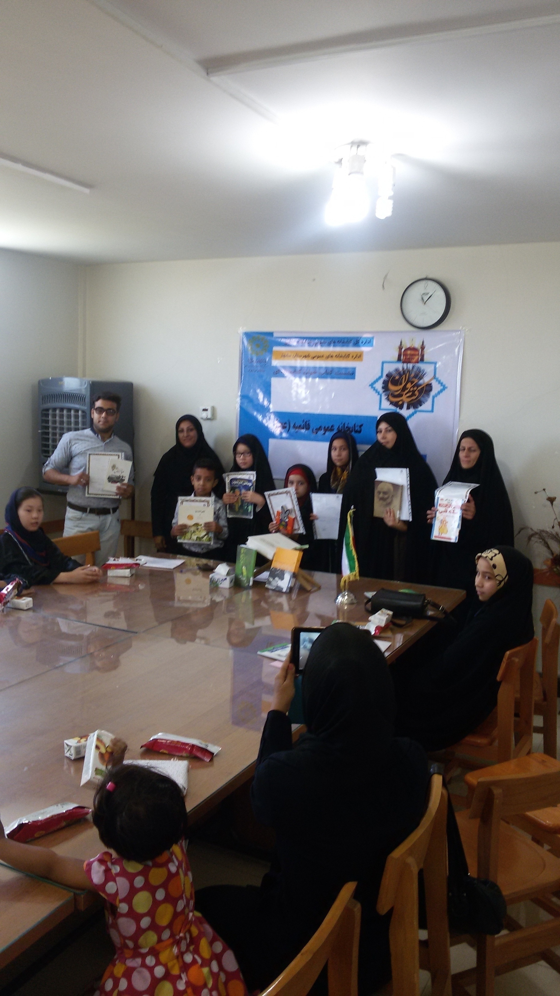 همزماب با ولادت حضرت معصومه (ص) وآغاز دهه کرامت مراسم جمع خوانی کتاب ماه مرداد بنامه خورشید می ماندبا اعضای کتابخانه درمورخ 14/05/1395 درکتابخانه برگزار گردید.