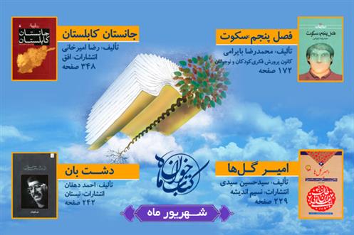 به گزارش روابط عمومی نهاد کتابخانههای عمومی کشور، کتابهای «امیرگلها» نوشته حسین سیدی، «جانستان کابلستان» نوشته رضا امیرخانی، «دشتبان» نوشته احمد دهقان، و « فصل پنجم: سکوت» نوشته محمدرضا بایرامی در قالب ششمین سری از کتابهای طرح «کتابخوان ماه» ویژه شهریور 95 از سوی معاونت توسعه کتابخانهها و کتابخوانی نهاد کتابخانههای عمومی کشور و در راستای اجرای منویات مقام معظّم رهبری(دام ظله العالی) در خصوص لزوم معرفی و در اختیار گذاشتن کتاب خوب و سالم برای پرورش فکری جامعه و نیز اقدام عملی در مسیر اجرای سیاستهای سال 1395 نهاد (سال خواندن) معرفی شدند.