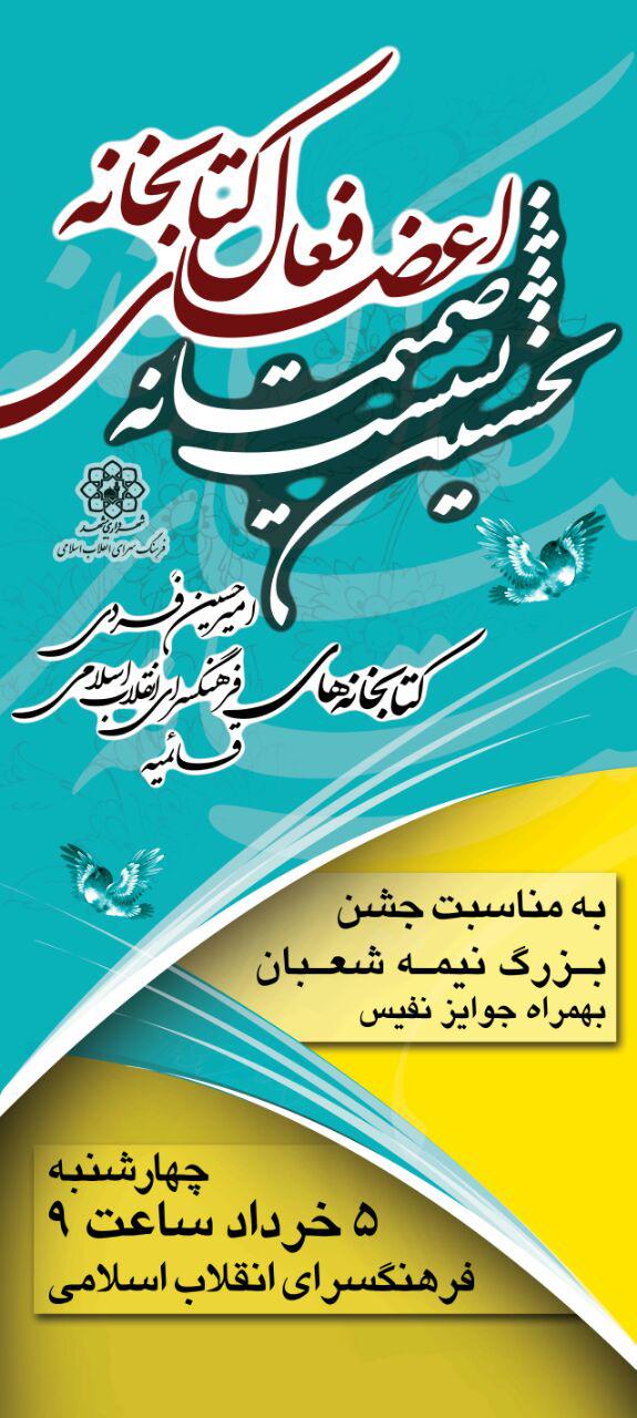 اولین نشست صمیمنانه اعضای سه کتابخانه امیرحسین فردی ، قائمیه ، فرهنگسرای انقلاب اسلامی منطقه پنجتن در روز چهارشنبه مورخ 5/3/94 درسالن اجتماعات فرهنگسرای انقلاب با حضور 300نفر ازاعضای سه کتابخانه وهمچنین کارشناس فرهنگی اداره کتابخانه های عمومی مشهد سرکارخانم عابدزاده و معاون فرهنگی شهرداری منطقه 4 جناب اقای ابراهیمی ومسولین کتابخانه های فرهنگسرا سرکارخانم سبزه بین وکتابخانه امیرحسین فردی سرکارخانم جنتی برگزار گردید .دراین مراسم پخش کلیبهای سه کتابخانه ، مولودی خوانی به مناسبت نیمه شعبان ،دعوت از جناب آقای دکترصاحبی روانشناس محترم ، تقدیراز 10نفرازبرگزیدگان برتر مسابقه دخترشینا ، تقدیراز سه برگزیده مسابقه رویا نیمه شب ، تقدیراز5نفرازاعضای هایکو کتاب وهمچنین تقدیرازسه اعضای فعال سه کتابخانه و گفتگو باآنها درباره علاقه به کتاب وکتابخوانی می باشد.ودرآخر مراسم تقدیراز2نفر ازحضار واهدای جوایز.