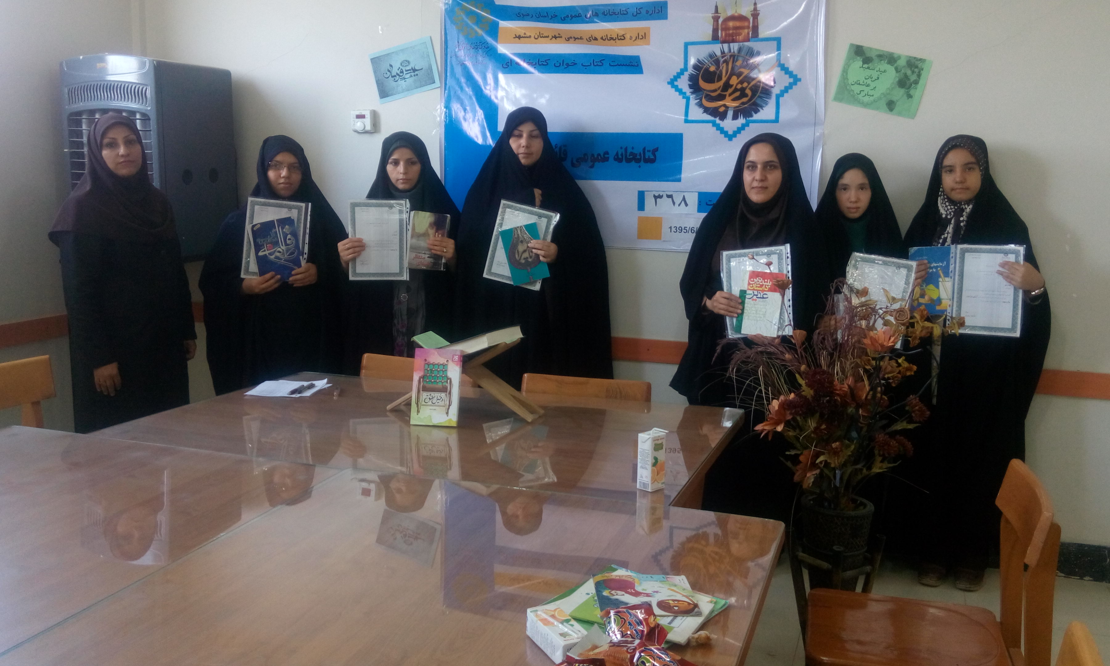 شرکت تعداد25 نفرازاعضای کتابخانه روابط عمومی اداره کتابخانه های عمومی شهرستان مشهد،سومین نشست کتابخوان کتابخانه عمومی قائمیه این شهرستان در سال جدید، به همت کتابخانه عمومی قائمیه مشهد در تاریخ 17/05/95 درکتابخانه عمومی قائمیه برگزار شد. در این نشست که مسولین واعضای کتابخانه عمومی قائمیه اازاعضای کتابخانه و کتابدار کتابخانه حضور داشتتند، 6 کتاب معرفی شد.که درآغاز با تلاوت قرآن توسط آقای یعقوبی ازهمکاران کتابخانه وخیر مقدم به مهمانان تبریک به مناسبت دهه کرامت توسط مسول کتابخانه جلسه آغاز گردید.